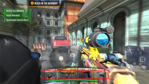 2、拿起武器,杀死所有敌人。你拥有丰富的武器装备。