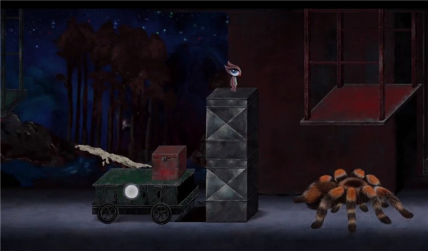 3、然后复活后,旁边平台会有一个我们样子的茧,将其推下去,推着茧从蜘蛛面前过,蜘蛛会直接将茧抓走,当过路费一般