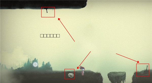 3、拨动开关回到地面,然后捡起石头砸向对面开关,将台阶升起来,