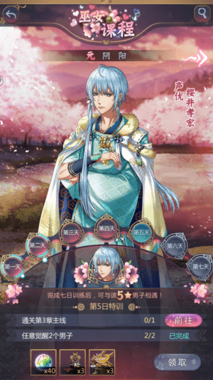 巫女课程:为新手巫女设置的,完成7日任务即可获得一个五星男子