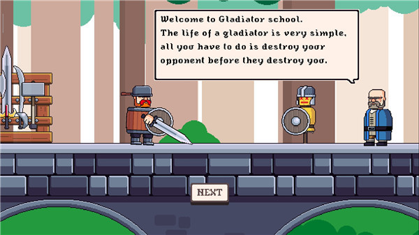 骑士大乱斗(Knight Brawl)是一款2D卡通画面的动作冒险游戏。并且游戏采用了微像素游戏画面,使得整体质感非常的清晰,让玩家可以有极佳的视觉体验。而且游戏内还有着多个场景和地图供玩家玩耍和挑战,而且这些地图场景内还有多种任务可以接取,完成任务可以获得丰富的奖励。游戏中玩家将会扮演一名剑士,将你手中的标枪瞄准你的敌人射出去,而且要瞄准空档期再投射,也要注意敌人可能会拿起手中的盾牌进行格挡,需要趁他们举盾空档发起攻击。