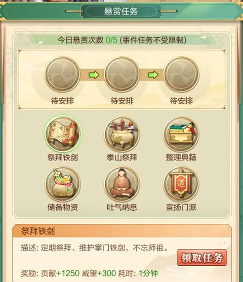 2、加入门派后,可用门派贡献在藏书阁中兑换武功。获取贡献小技巧:每日可完成5次门派悬赏任务,其他npc触发的事件任务也会有贡献奖励,而且不占用每日次数。注意:初入江湖贡献不足,建议少侠优先兑换需要的武功。