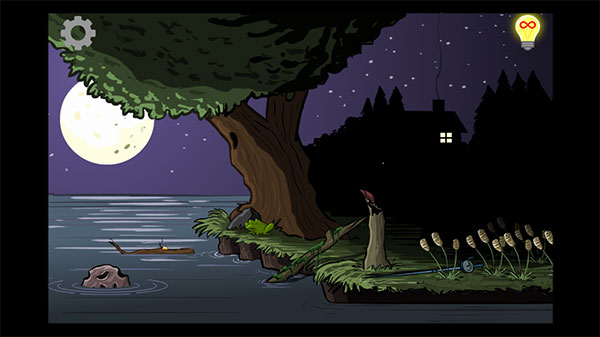3、点击树洞引走小鸟,再点击枯树干和鱼竿。