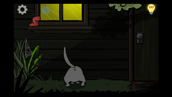 3、点击猫吸引注意力,再点击门上方的树枝转移猫的视线,趁猫不注意躲入老鼠洞,依次点击蓝黄阀门回到窗台上。