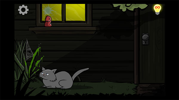 2、猫被蜘蛛和飞虫吸引过去后,点击门把手落在门下面。