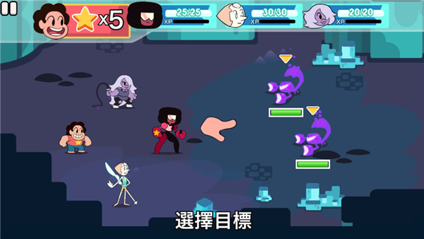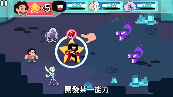 《攻击光明史蒂芬宇宙》是一款根据经典动画《史蒂芬宇宙》改编的回合制冒险闯关游戏,画面风格可爱,玩法新颖有趣。玩家需要和石榴石、珍珠、紫水晶三位伙伴一起踏上拯救世界的旅程,在各种主题场景中探索挑战。游戏结合了问答和动作冒险元素,每个回合的攻击策略灵活多变,可以根据行动点数选择不同的战斗方式。