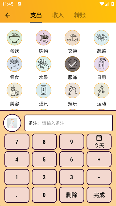 4、含有记账分类服务,可根据消费的类型选择性进行记账。