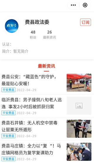 2、而且可以看到有来自于当地各个部分的公众号,我们随便进去一个看看;
