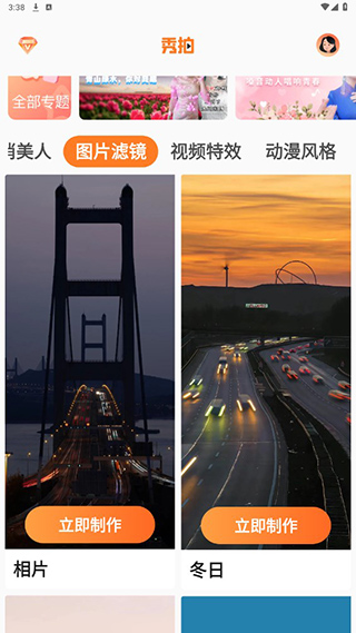 秀拍app是一款出色的应用,为用户提供在线拍摄照片的绝佳体验。不论用户想要拍照还是录视频,该应用提供了丰富的道具、特效和滤镜供您选择,让您的作品变得更加出彩。而且,这款应用非常简单方便,随时随地都能使用,让用户随时捕捉重要时刻或创作独特的影像。软件内拥有广泛的道具库和特效,用户可以根据个人喜好和场景需求,选择适合的道具和特效,给自己的照片或视频增添更多趣味和个性。无论用户想要拍摄生动活泼的自拍照,还是多种多样的视频内容,都能满足需求。
