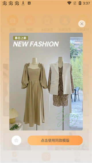 我最近发现了这款“我拍衣”相机软件,真的挺有意思的。界面设计得很漂亮,各种颜色搭配得特别好看,用它拍照修图感觉很高级,完全不需要专业设备,手机就能搞定。里面功能很多,比如加水印、配文案,还有各种滤镜和模板,适合用来发朋友圈或者做营销图片。最让我惊喜的是它的构图辅助功能,对于我这种拍照小白来说特别友好,轻轻松松就能拍出有层次感的照片。而且操作真的很简单,几分钟就能上手,完全不用担心复杂的功能。