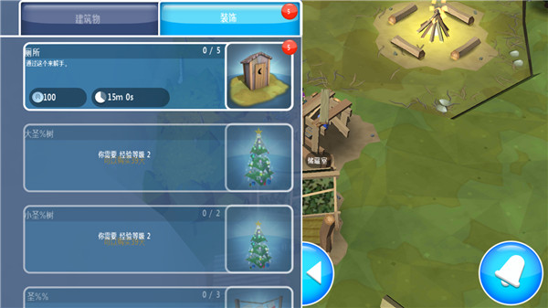 1、游戏主要以建筑和采集为主,建筑物分为两类,一类装饰性,另一类实用性。而装饰性建筑是可以卖掉的。