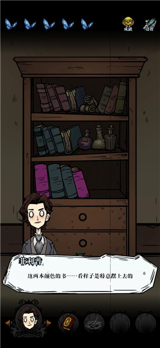 13、可以看到,书中的密码对应的就是此前我们看到的图案,而那四种图案的颜色分别对应书柜中摆放的四种书,按照书柜中各色书本的摆放顺序来点击对应按钮即可解开书中的密码,获取【药水配方】。