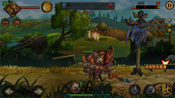 7、玩家可以点击游戏右下角的兽来让武将进行狂化变身;