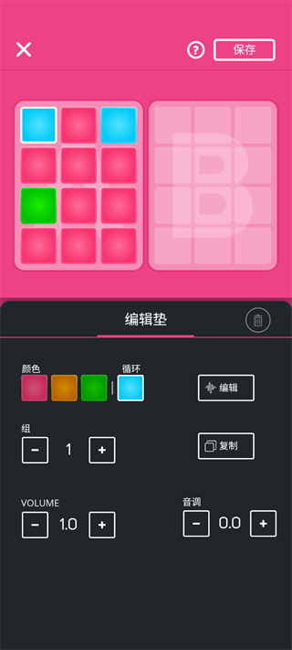 5、还可以选择设置按钮编辑当前打击垫的颜色以及音调等等。