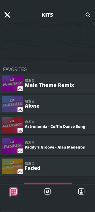 Super Pads打击垫音乐魔器是一个非常酷的音乐教学软件,特别适合喜欢音乐但又不太懂制作的小伙伴。它里面有很多热门歌曲的套件,像Alan Walker的《Faded》、Marshmello的《Alone》这些大牌歌手的作品都有,而且还能跟着节奏玩打击垫,感觉特别有趣!最棒的是每个曲子都有详细的教学,就算你是零基础也能轻松上手。