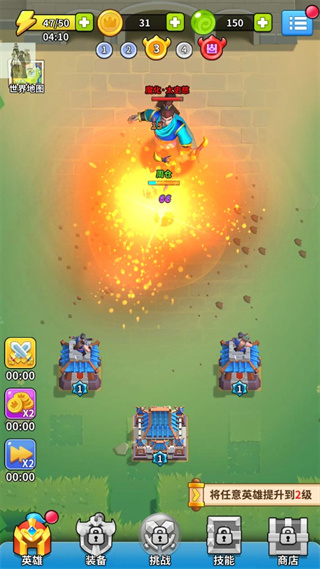 4、每次战斗结束都可以获得经验,我们现在点击左下角的英雄按钮,去提升下等级。
