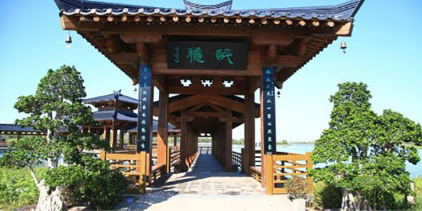 澄碧台的名称,有着一种特别的诗意。澄碧这个富有色彩感的词语,曾多次出现在古人的诗行之中,例如李白的“君去沧江望澄碧,鲸鲵唐突留余迹”;还有唐代诗人罗邺的“台阁层层倚半空,绕轩澄碧御沟通"。澄碧台借助地形,营造出的台地景观,再现碧波浮光跃金、湖山层林叠秀的景观。这里的两方牌匾“龙门”和“博望”,纪念汉代的两位伟大人物,他们是被誉为“史圣”的《史记》作者太史公司马迁、丝绸之路的开拓者博望侯张骞。敬仰中华先贤,丰功永志不忘。