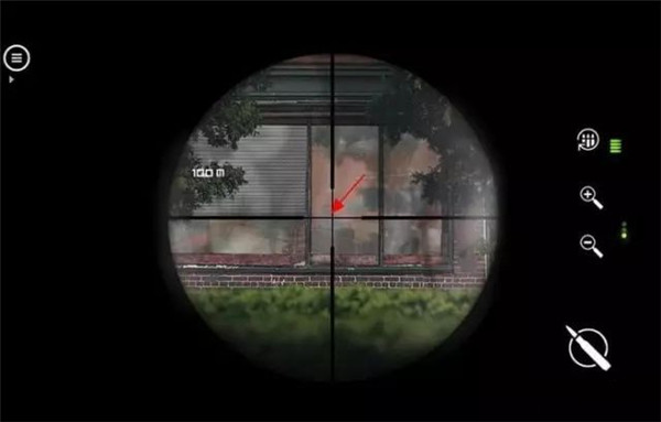 任务玩法:此关的风力更大,小伙伴们应该在两个绿色的瞄准点交叉的位置上举枪射击才可。下图中两个红色箭头的交汇处就是当前狙击镜下所能射击到的方位。利用这个特性,击杀掉走路的上尉即可。