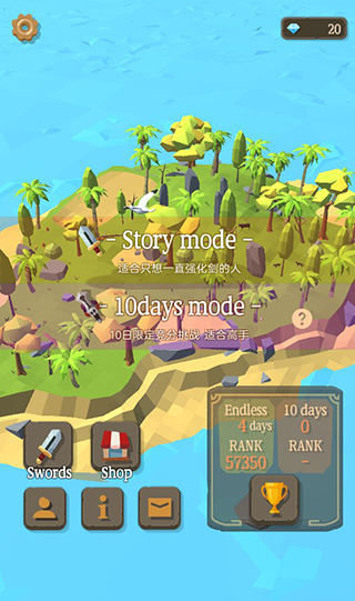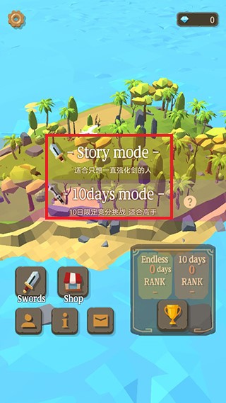 玩家可以选择生存铸剑或者十日生存模式开始游戏,本次选择的是生产铸剑模式。