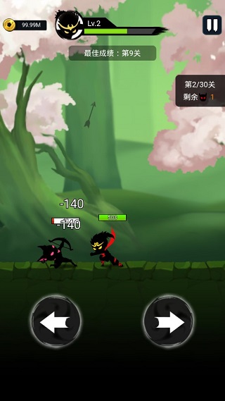 2、简单的操作方式,只需要使用左右两个按键就可以尽情的进行关卡的挑战,让可以在这里击杀更多的敌人,成功的挑战更多的关卡,需要注意的是,每一次的挑战是不间断的,如果挑战失败了就要从头开始。