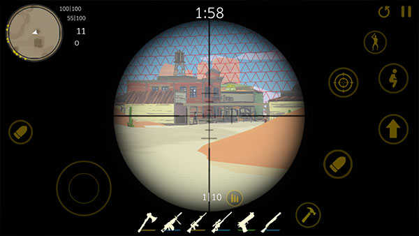 8、更具地形躲避敌人的子弹,开始瞄准射击吧,活到最后!