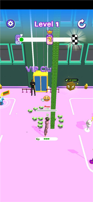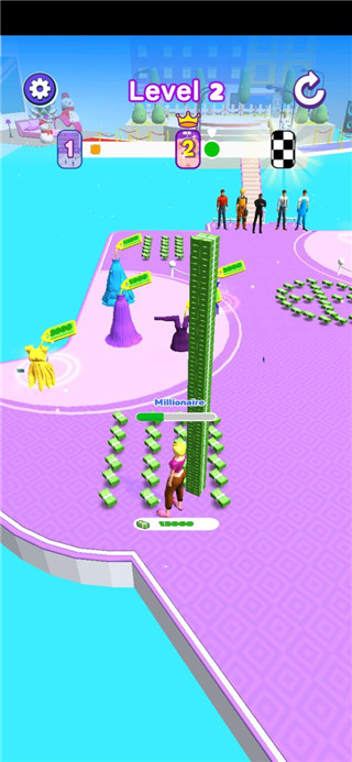 游戏中玩家需要在前进的过程中通过收集钞票,然后购买衣服,包包、鞋子、头发、帽子等,等到成为时尚领袖就可以上一层楼,然后接着可以拾取路上的钞票,购买更为精致美丽的华服,然后牵手小哥哥。