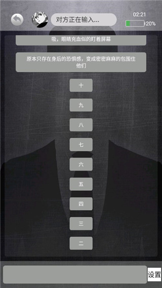 诡秘寝室游戏中玩家需根据聊天互动中的文字判别当下环境,并从各位的谈话中寻找蛛丝马迹,每当手机电量消耗殆尽,则需要稍等片刻才能自动恢复,在电量恢复期间玩家可根据已知谈话内容,找寻线索,依靠缜密的思维能力,观察能力,逃离这鬼魅般的寝室。除此之外,诡秘寝室游戏模拟社交与主角互动,将玩家带入到身临其境的小说之中,在对话互动中帮助主角寻找线索,推理案情,从而找到最终的真相。选择正确的选项,解锁更多的结局。感兴趣的玩家不妨下载体验一下试试看吧!