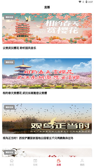 3、切换到【直播】页面,用户还可以查看各类文创直播,如果不小心错过直播,还可以查看精彩回放。