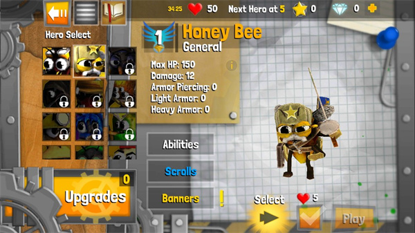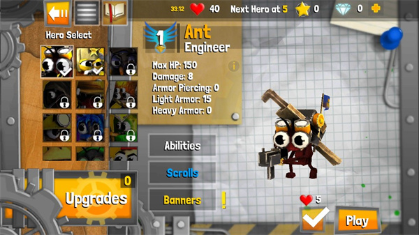 游戏中有25个不同技能的英雄可供选择,每个英雄都有独特的战斗方式,比如擅长潜行的蝉或会建造炮塔的蚂蚁。玩家可以同时操作两个英雄,并根据战局快速切换,游戏还支持单人模式和多人对战,适合各种类型的玩家。新手也能通过任务模式轻松上手。