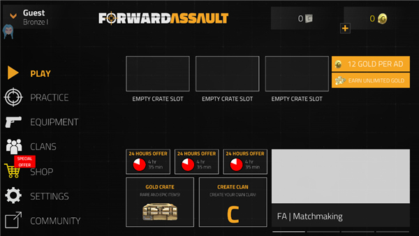 Forward Assault是由是《子弹力量》开发者Lucas在2017年新出的一款新的多人FPS射击类手游,在国内被翻译移植成为前锋突袭,为此小编今天就在这里为大家带来的是前锋突袭中文版是一款非常好玩的3D动作射击手游,采用高清写实的画面,丰富的地图关卡场景设定,玩家将在这里与对手展开真枪实弹的对战,在这个第一人称射击游戏里,具有较高的战术战略,真实的建模和迅速的行动。在逐步提升战斗能力的过程中,你可以获得更多的枪。比如经典的 AK-47 等等。也可以在游戏的排名模式下,攀登第一。
