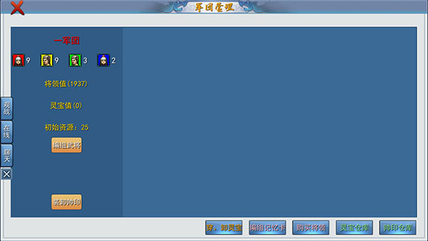 2、接着我们会进入到军团管理界面,此时再点击右下角的【购买将领】按钮。