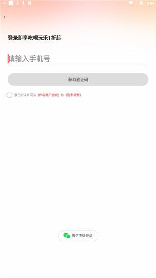 1、打开蜂鸟有享app软件后,新用户需使用手机号进行注册登录,同时支持微信快捷登录