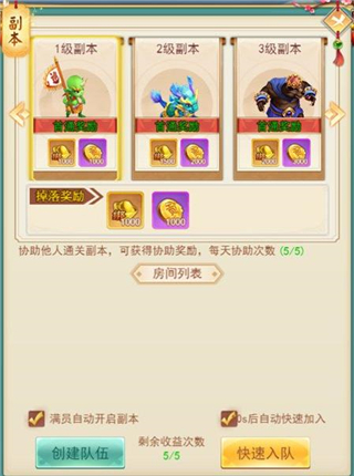 组队闯关在没有通关的关卡可以自己成为队长,独自挑战或者是等其他玩家进入队伍一起打,通关之后会变为协助奖励,这时这个关卡无法自己开队,只能加入其他玩家的队伍,协助作战获得奖励。