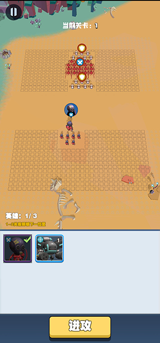 3、通过界面可以知道,目前处于第一个关卡,对面就是自己的敌人;