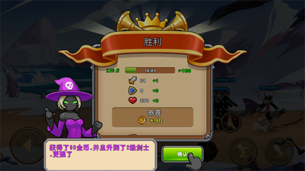3、与海量的怪物进行战斗,升级你的火柴人,获得更多强大的英雄。