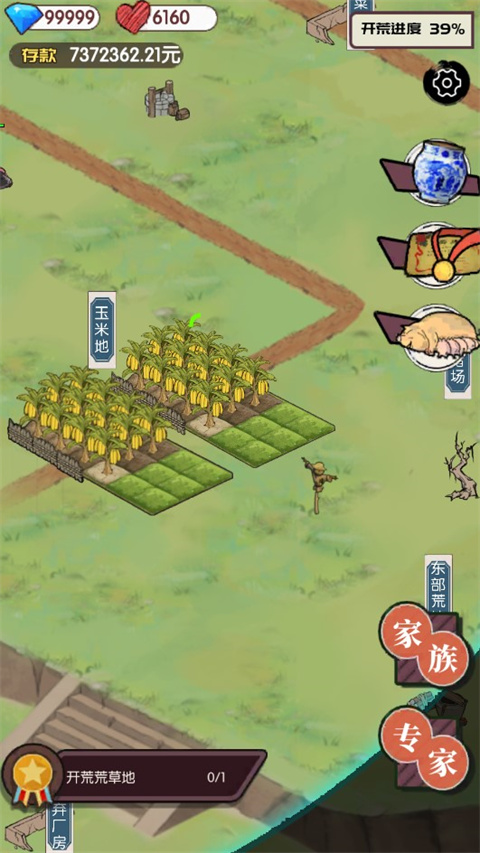 3、后院有一块荒地,可以修建一一个养猪场,去开荒看看吧;