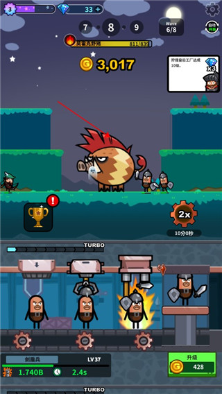 英雄工厂是一款有趣的放置战斗手游,该游戏需要在工厂中不断的生产英雄,和各种怪物进行战斗,每次对抗成功之后都可以获得丰厚的奖励和经验,获得的金币可以升级工厂。通过解锁各种技能进行战斗,给你的英雄佩戴强大的头盔和武器,战斗的时候能够将大boss击杀。用钻石抽取宝箱可以大几率的获得稀有传说的技能和武器。生产各种不同职业技能的英雄作战,消灭怪物来赚取金钱,不断地解锁扩大工厂,生产出超级多的英雄帮你进行战斗,有喜欢的朋友欢迎下载体验!