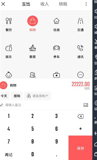 3、整个界面是非常简单的,可以很好的满足你的记账需求,不管是什么类型的收支都可以找到对应的分类