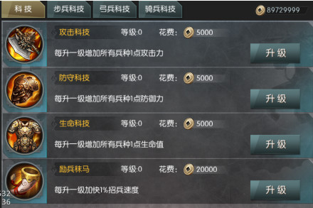 可以针对特定兵种提升他们的攻击、防御、生命;