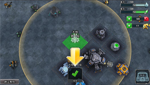 4、用激光塔、导弹发射台、大炮、城墙以及地雷防御基地