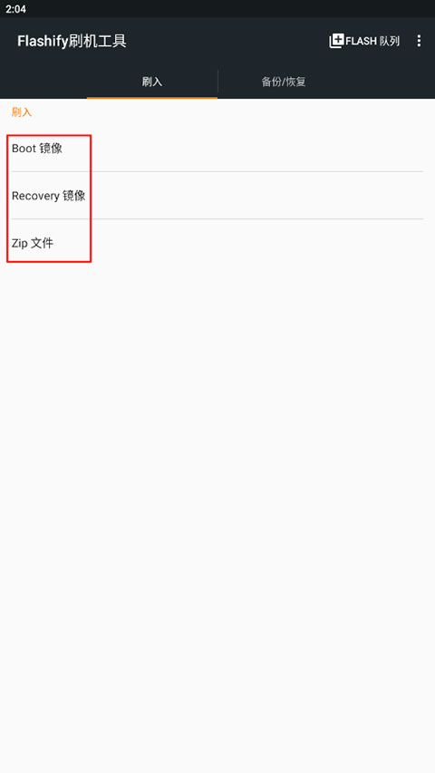 1、进入flashify,点击“Boot镜像”、“Recovery镜像”或“Zip镜像”;