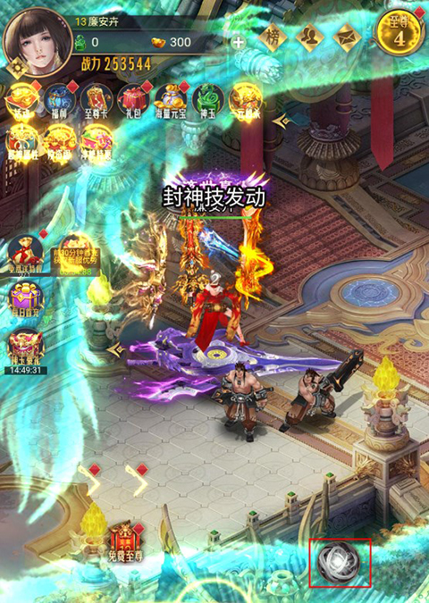 3、主角还有强力的封神技可以释放,右下角能量满后点击即可召唤神龙一键清屏。