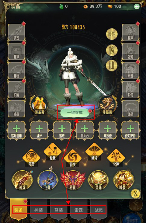 2、通过主线等任务,玩家可以获取各种装备,点击就能一键穿戴,大幅提高角色战力。