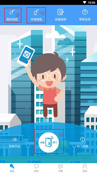 3、登陆平台,选择“申请钥匙”,添加目标门禁设备
