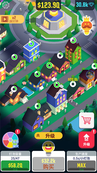 点亮城市官方版是一款非常休闲轻松且极具治愈系的放置类游戏,游戏画风简约卡通,玩法简单易上手。以点亮整座为黑暗包围的城市为核心,有着各种各样的经营玩法等你来体验,通过不断的雇佣各种卡爱的灯泡小精灵、为进行全面的升级操作获得更多的小灯泡,将光照作用发挥到最大程度的来点亮城市的每一各角落。从而让你照亮的城市去点亮被黑暗笼罩的人心,达到治愈效果。同时解锁各种各种宝藏、收集可用材料进行建设,打造各种建筑物来赚取新的收益。升级成灯泡国王获得更多能量,开启一段拨开阴霾走上寻找光明的旅程。感兴趣的小伙伴欢迎前来下载试玩