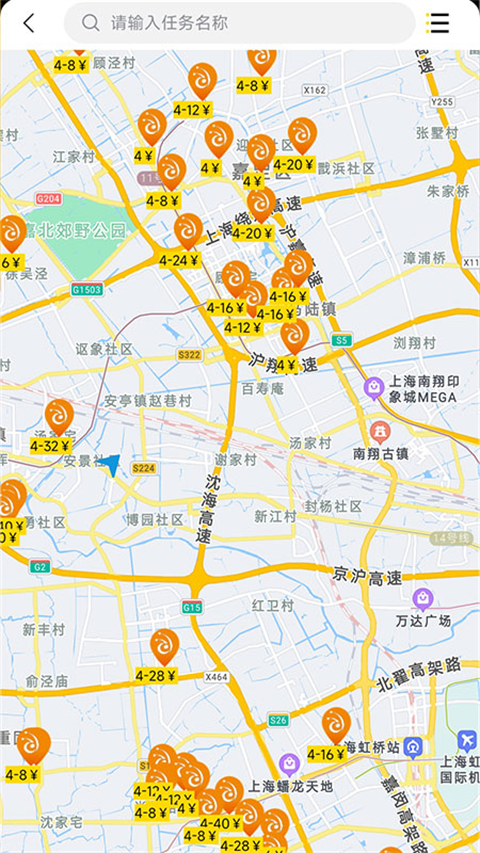 4、也可点击当前页面中的定位图标,定位查看自己附近的任务分布;