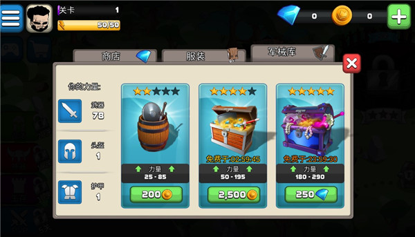 2、想要提升战斗力,先选择武器,新手玩家进入游戏,可以先免费选择装备宝箱,要是运气不错开出一个极品武器,那前期就不愁了,游戏内本身就有各种五花八门的装备,搭配起来也非常有趣。