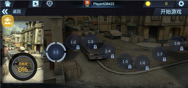 2、选择章节,一开始只能选择第一章,完成才能解锁后面的关卡