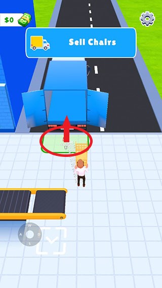 木材放入制造机器后机器会自动制造椅子,玩家需要控制人物到白色方框位置拾取椅子。