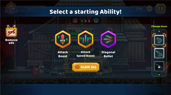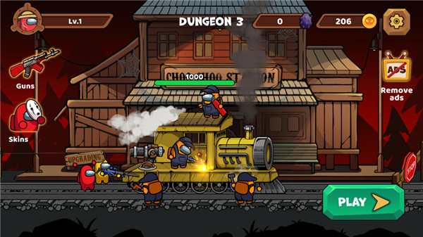 当射击版太空狼人杀遇上肉鸽是一种什么样的玩法体验?今天小编这里就为大家推荐由PHOENIX GLOBAL发行的以逃离恐怖花园为背景的横板动作射击游戏——查尔斯小火车生存射击手机版《Choo Survival: Impostor Shoot》,游戏采用了2D平面卡通画风,汇聚了众多热门经典的流行元素在其中,以近两年人气极高的《太空狼人杀》中的角色为主角,通过闯关击败地图中的丧尸、恶魔、僵尸等恐怖的怪兽,为玩家带来紧张刺激的爽快感。在升级的过程中加入了肉鸽元素,让每一次过关都有着不同的体验。